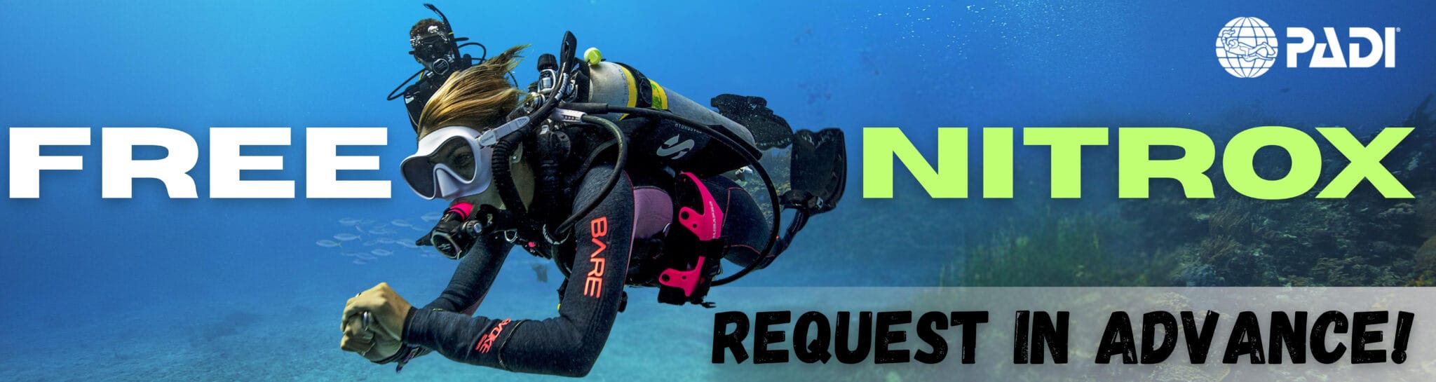 - Free Nitrox is available for all Nitrox certified divers, upon request